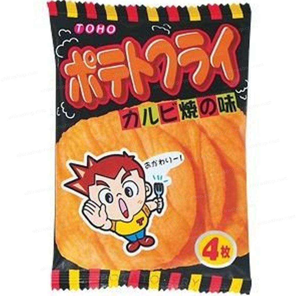 ポテトの香ばしさにカルビ焼の味が引き立つ。サクッとした歯ごたえのスナック菓子。