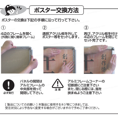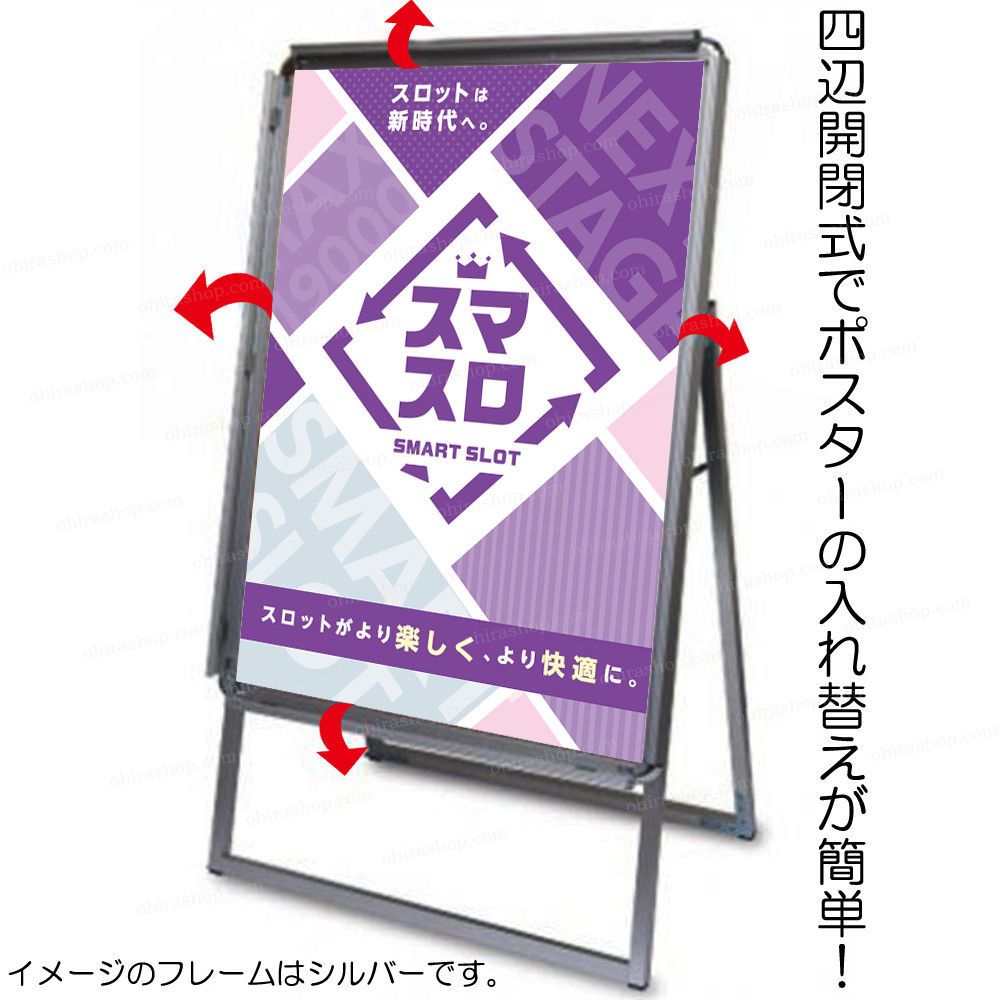 四辺を開閉してポスターを交換するタイプのA型スタンド看板