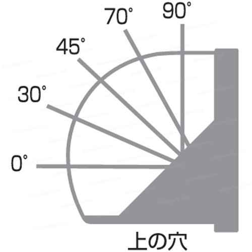 上の穴使用時の角度:0°・30°・45°・70°・90°
