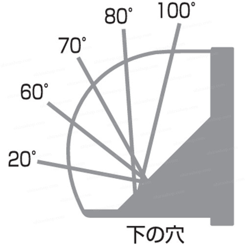 下の穴使用時の角度:20°・60°・70°・80°・100°
