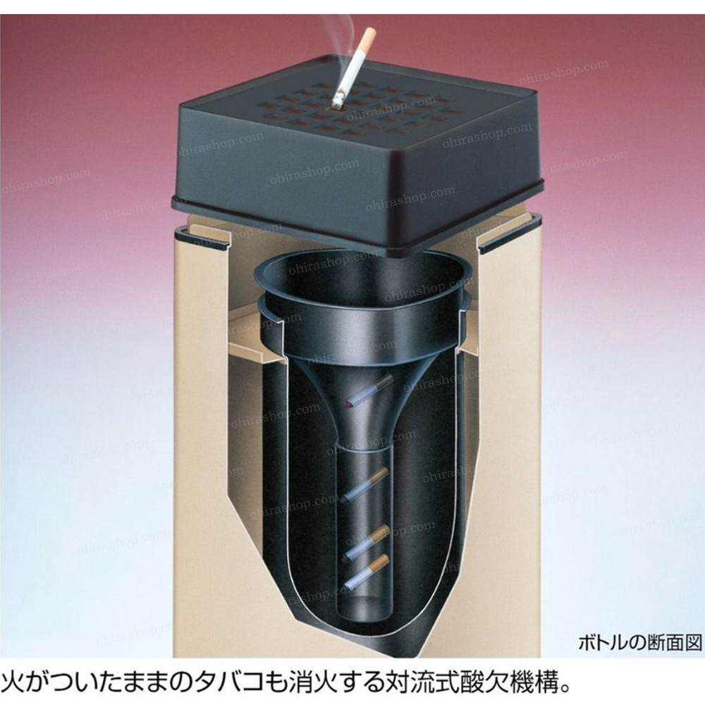 火がついたままの吸い殻をポイするだけで完全消火する消煙スモーキングスタンド。