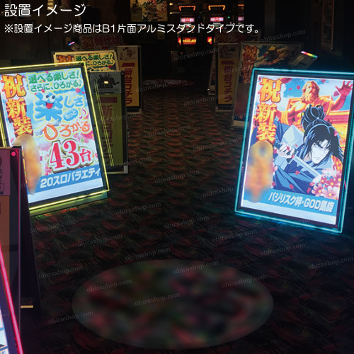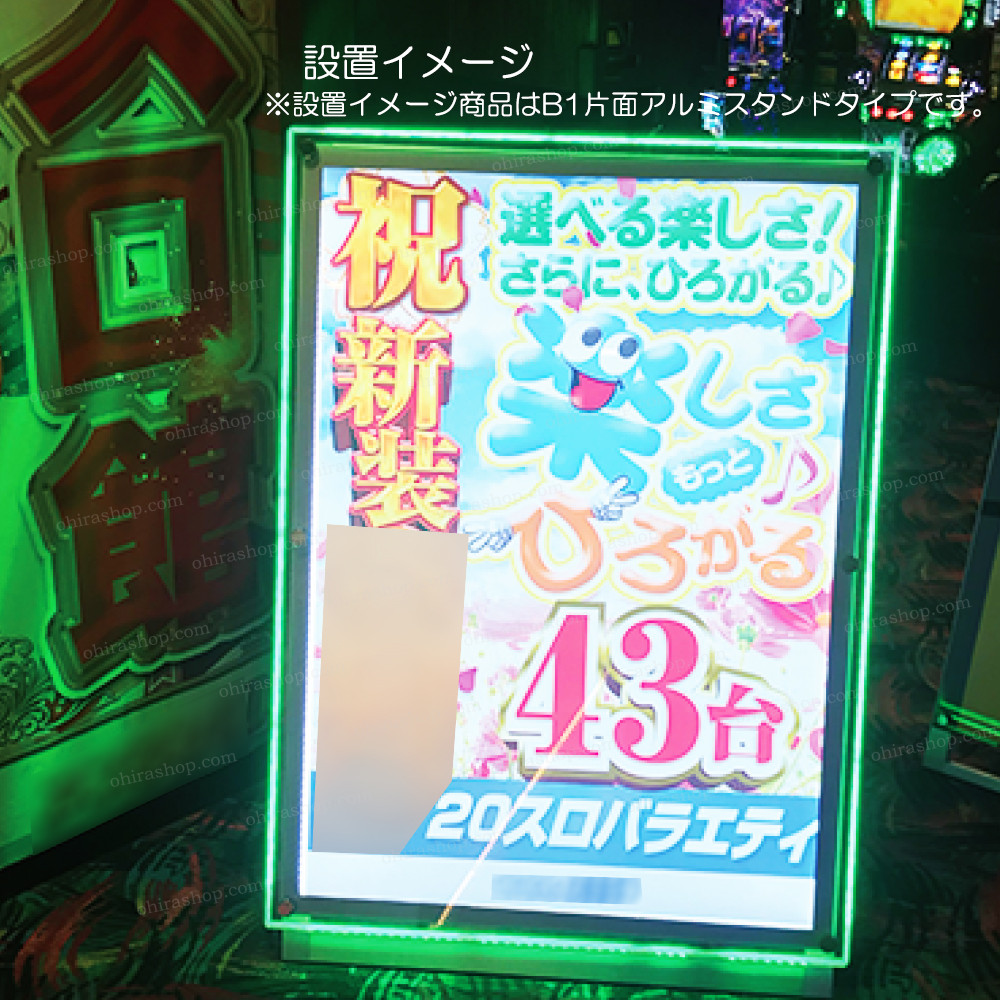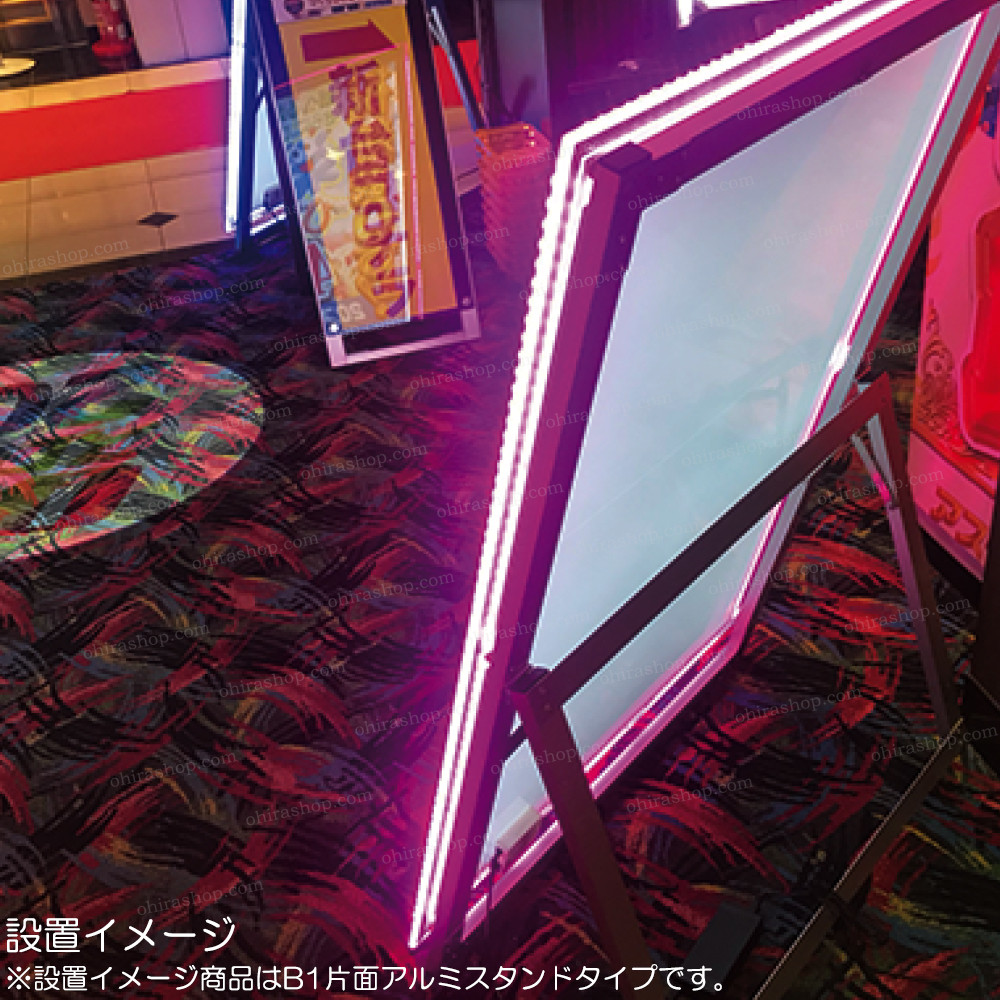 エッジ部分を様々な色に発光させる機能が備わっているアピール度満点のポスタースタンドです。