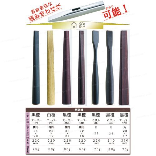 ハンマーヘッドをお好みの柄を組み合わせることであなただけの特別な一本になること間違いなし!